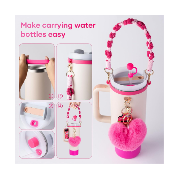 10pcs Cups Accessories Set for Stanley 40 oz Cups, Flower Straw Cover for 10 mm Straws, Square And Round Silicone Spill Proof Stopper, Letter Charm, Sticker for Stanley Cup Decorations